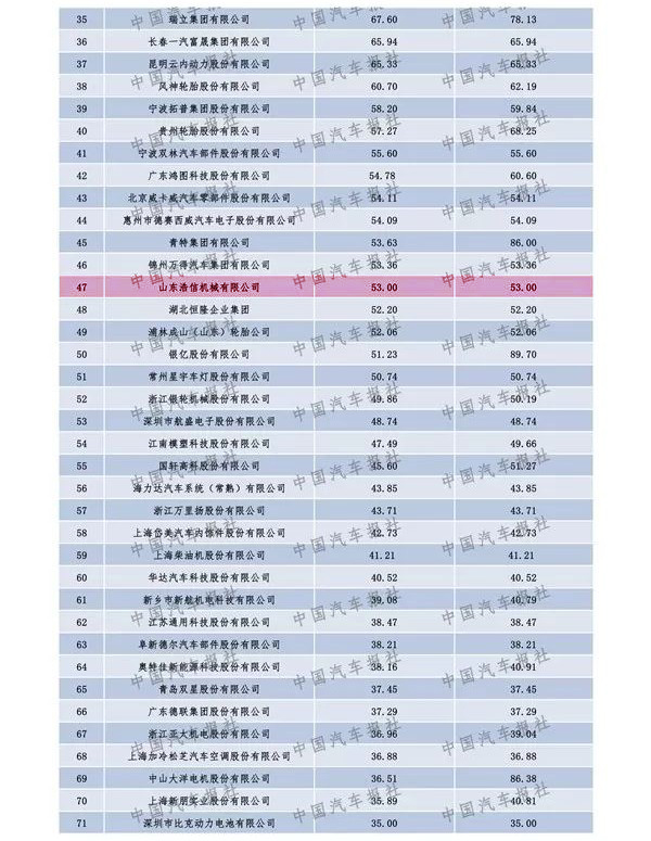 山東浩信再次榮登中國汽車零部件企業(yè)百強(qiáng)榜