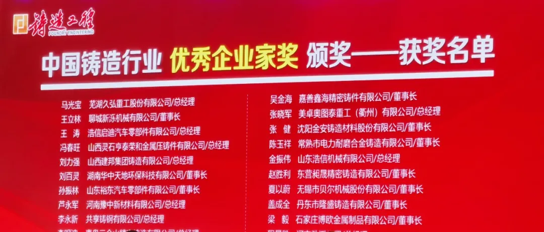 祝賀|金振偉、王濤榮獲“中國鑄造行業(yè)優(yōu)秀企業(yè)家”榮譽稱號
