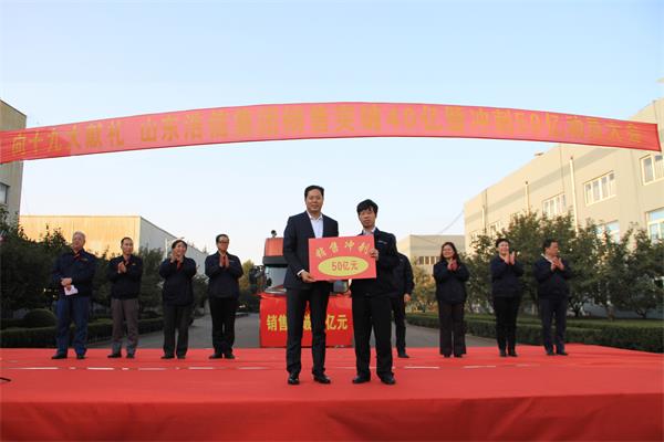 隨后,呂繼賢董事長向浩信機械總經理頒發(fā)完成40億匾牌;向集團營銷公司頒發(fā)沖刺50億匾牌。